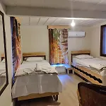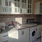 Cozinha comum também está à disposição dos hóspedes. Quarto em acomodações particulares está localizado a 15 minutos de carro do aeroporto em Antalia.